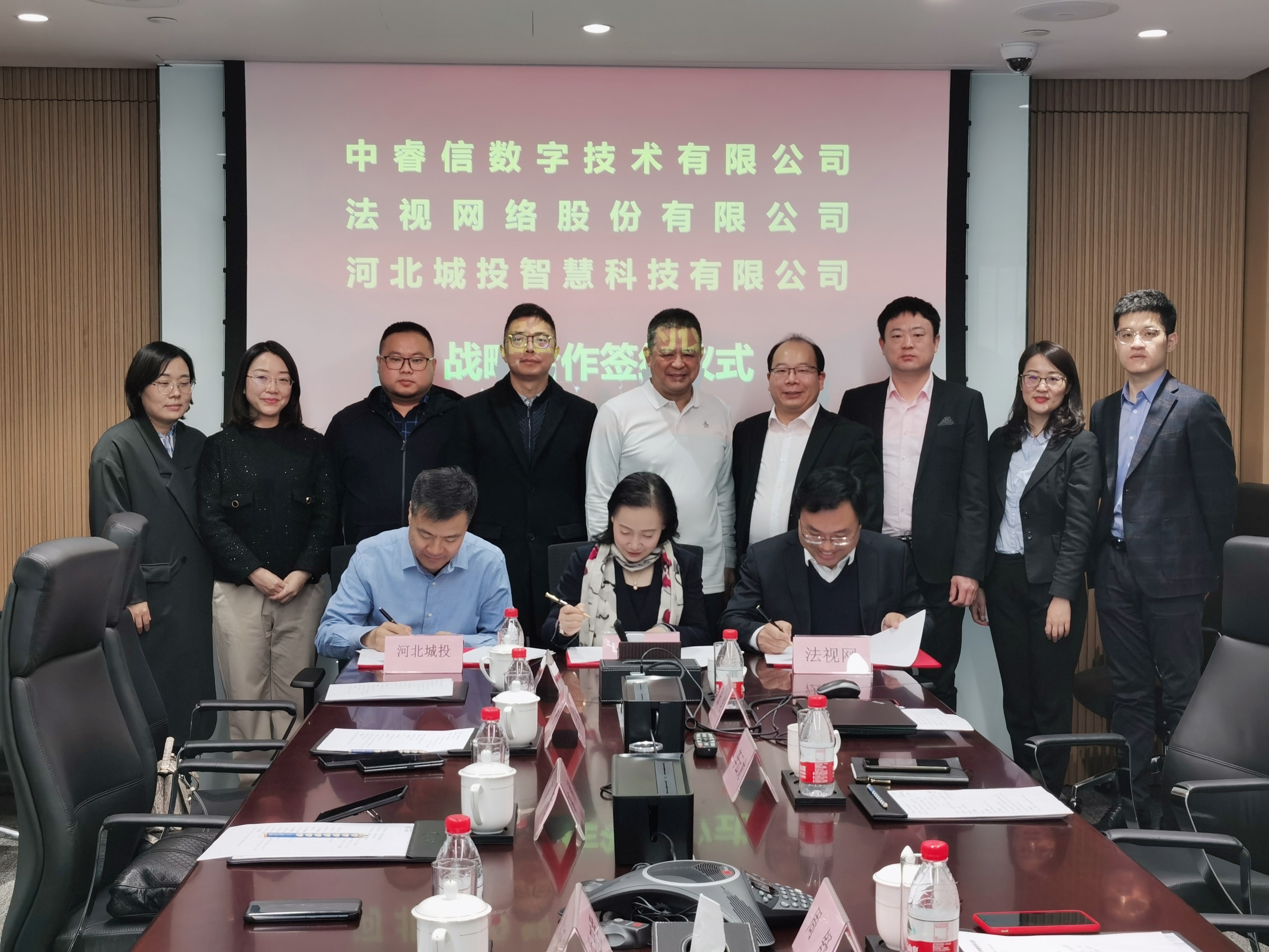 “两会”春风凭借力,扬帆远航正当时。2021年3月9日上午,中睿信数字技术有限公司(以下简称中睿信)、法视网络股份有限公司(以下简称法视网)、河北城投智慧科技有限公司(以下简称城投智慧)在北京金宝大厦举行战略合作签约仪式。法视网总裁高利、城投智慧董事长牛延君、中睿信首席财务官周舒等公司领导出席签约仪式。高利表示,法视网是以“法制宣传进万家”为主要核心任务的创新型文化科技传媒企业,率先在全国设立首家法治“平安社区”公益宣传平台及“法视网”线上宣传平台。三方战略合作签约,将开启里程碑式的合作。法视网发挥党建智慧屏运营资源优势,中睿信发挥在智慧平安小区投资、规划、建设、运营优势,城投智慧发挥智慧平安小区产品方案、商业运营优势,三方将尽快确定合作模式,快速推进智慧平安小区建设运营开花结果。牛延君表示,城投智慧是国有控股高新技术企业,运用互联网与物联网的技术优势,打造智慧城市综合服务平台。三方战略合作签约恰逢其时,凭借中睿信的资金实力、法视网的党建引领、城投智慧的平安社区系统,在河北省乃至全国快速推广,把智慧平安小区建设运营落实下去,实现三方从战略合作到紧密合作再到深入合作。周舒表示,中睿信作为新型智慧城市综合运营服务商,专注于智慧城市的重资产投资、一体化建设、长周期运营和资产盘活,核心业务涵盖城市大脑、基层治理、智慧警务、智慧交通、智慧应急等领域。战略合作协议的签署标志着三方合作将进入新的发展阶段,三方将充分发挥各自优势,互补共赢,共同打造智慧平安社区建设运营新模式。三方将尽快成立“智慧平安社区合作专项工作小组”,确定具体合作模式、合作机制、整体建设运营方案,精诚合作、优势互补、共谋发展。